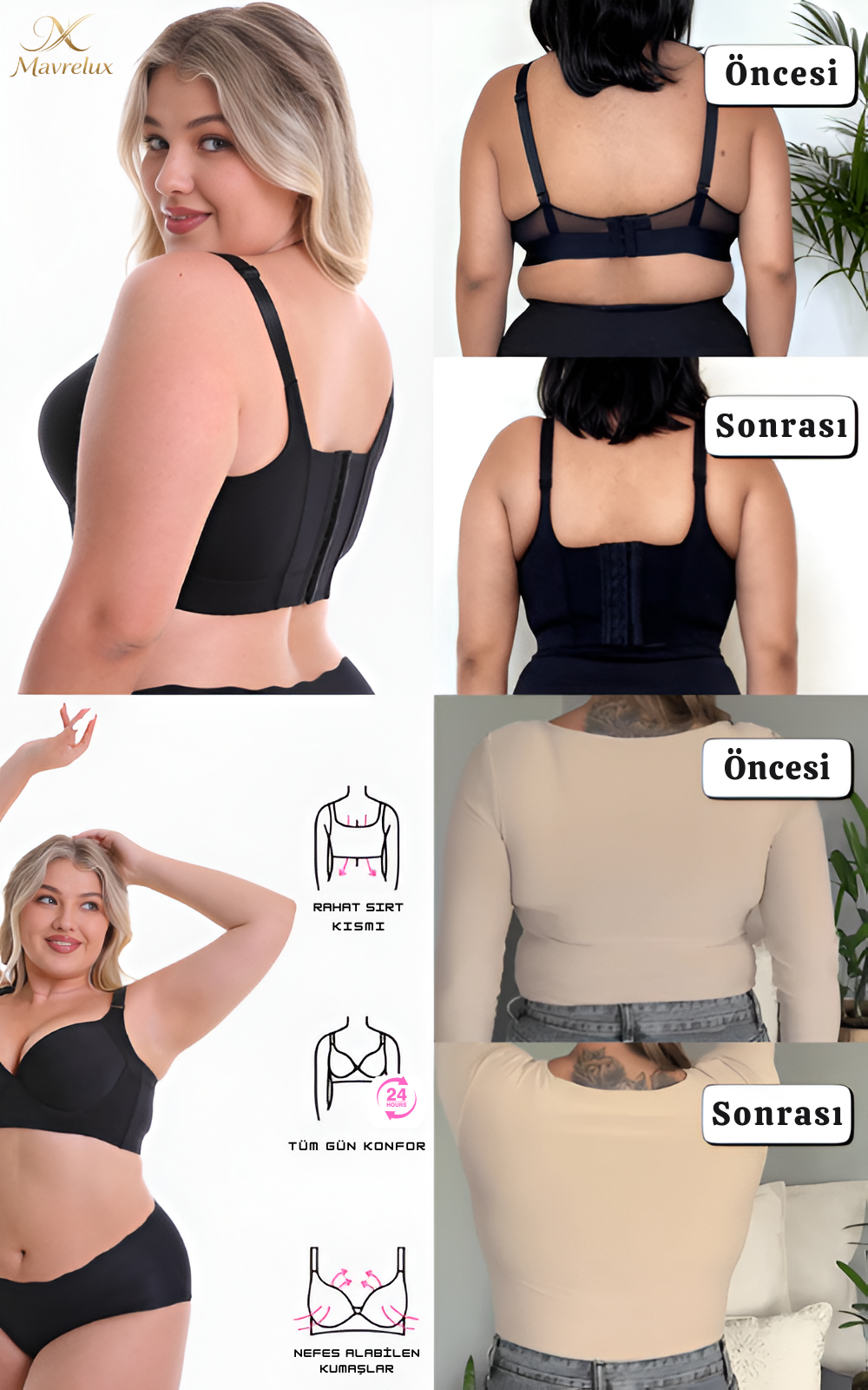 Eşsiz destek ve konfor sunmak üzere tasarlanan 5D dikişli kulplar, geniş yan kanatlar ve yastıklı omuz askıları,kıvrımlarınızı kaldırmak ve şekillendirmek için birlikte çalışır.U şeklindeki arka panel,sırt çıkıntılarını düzleştirir ve koltuk altı yağlarını ortadan kaldıraraksize güzel ve çekici bir silüet kazandırır. Sarkma yok, rahatsızlık yok sadece gün boyusaf birözgüven